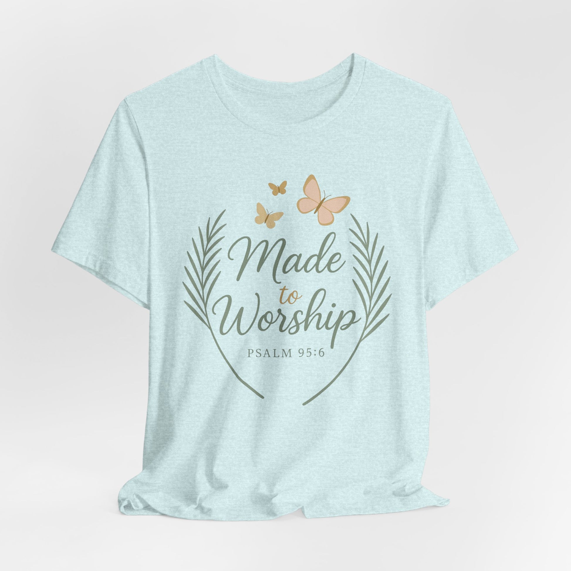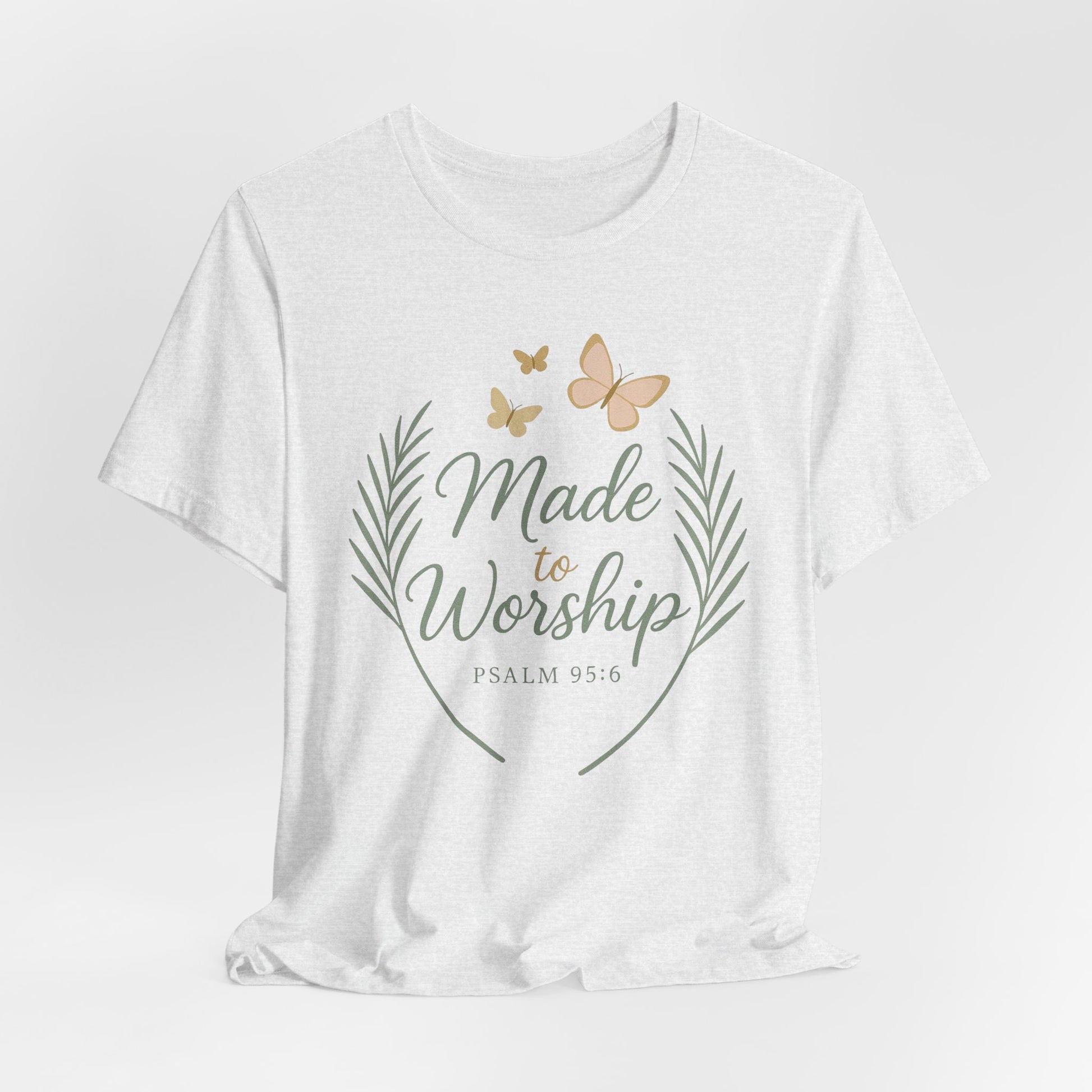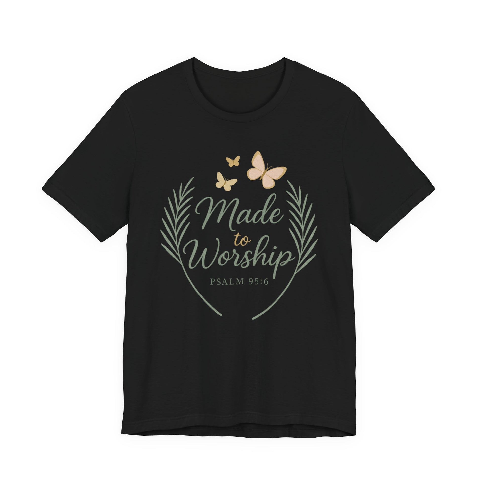 Made to Worship T-Shirt – Psalm 95:6 Christian Faith Tee with Butterflies