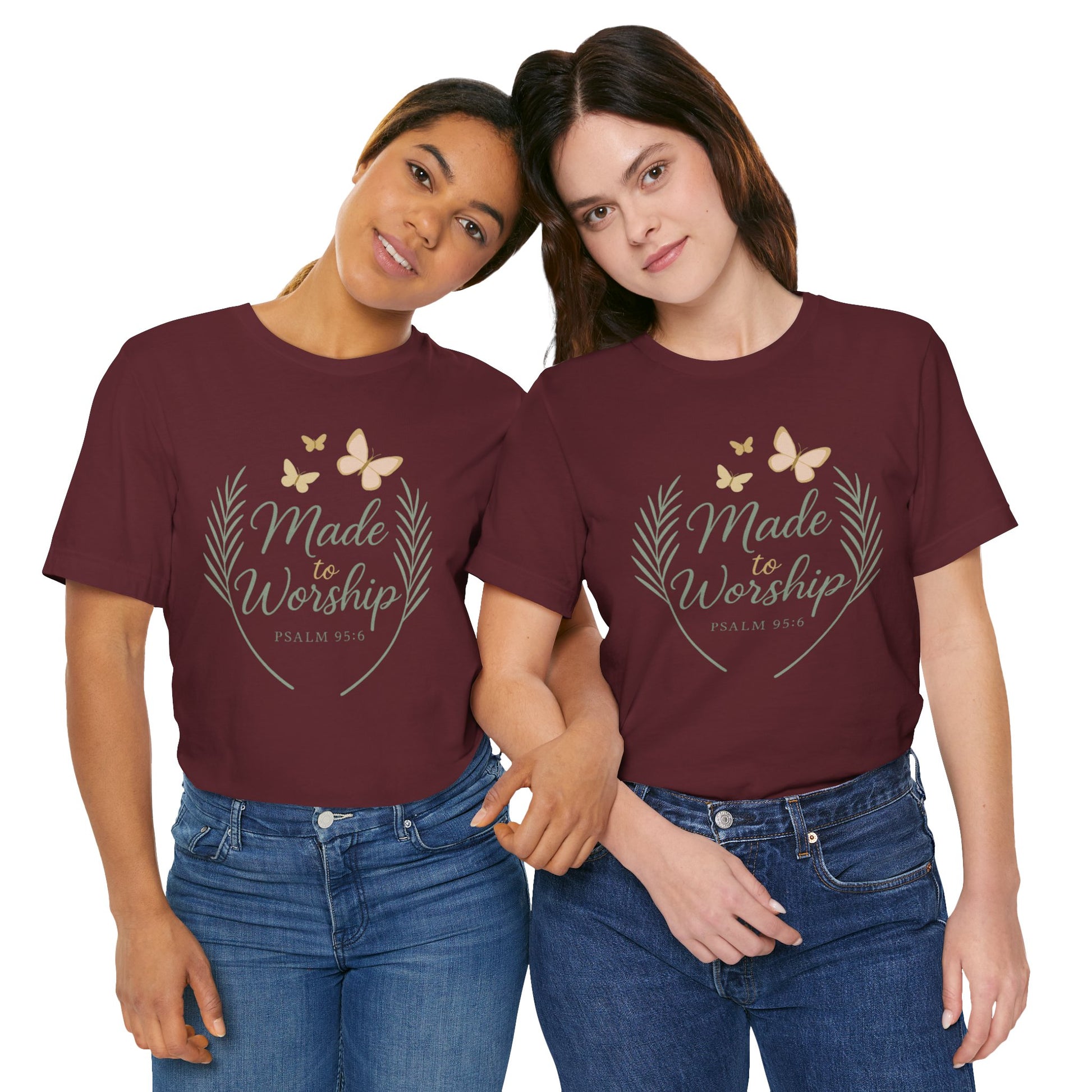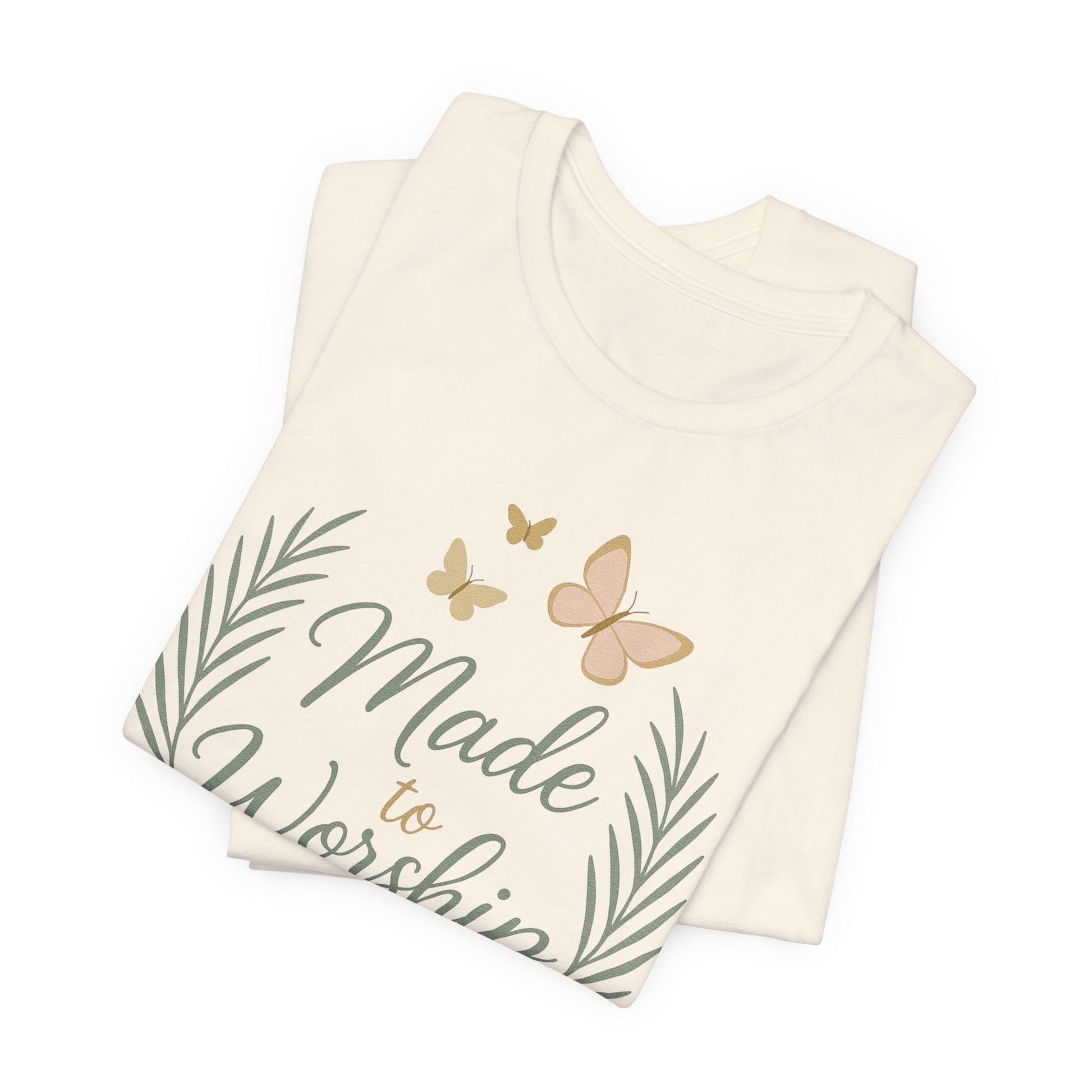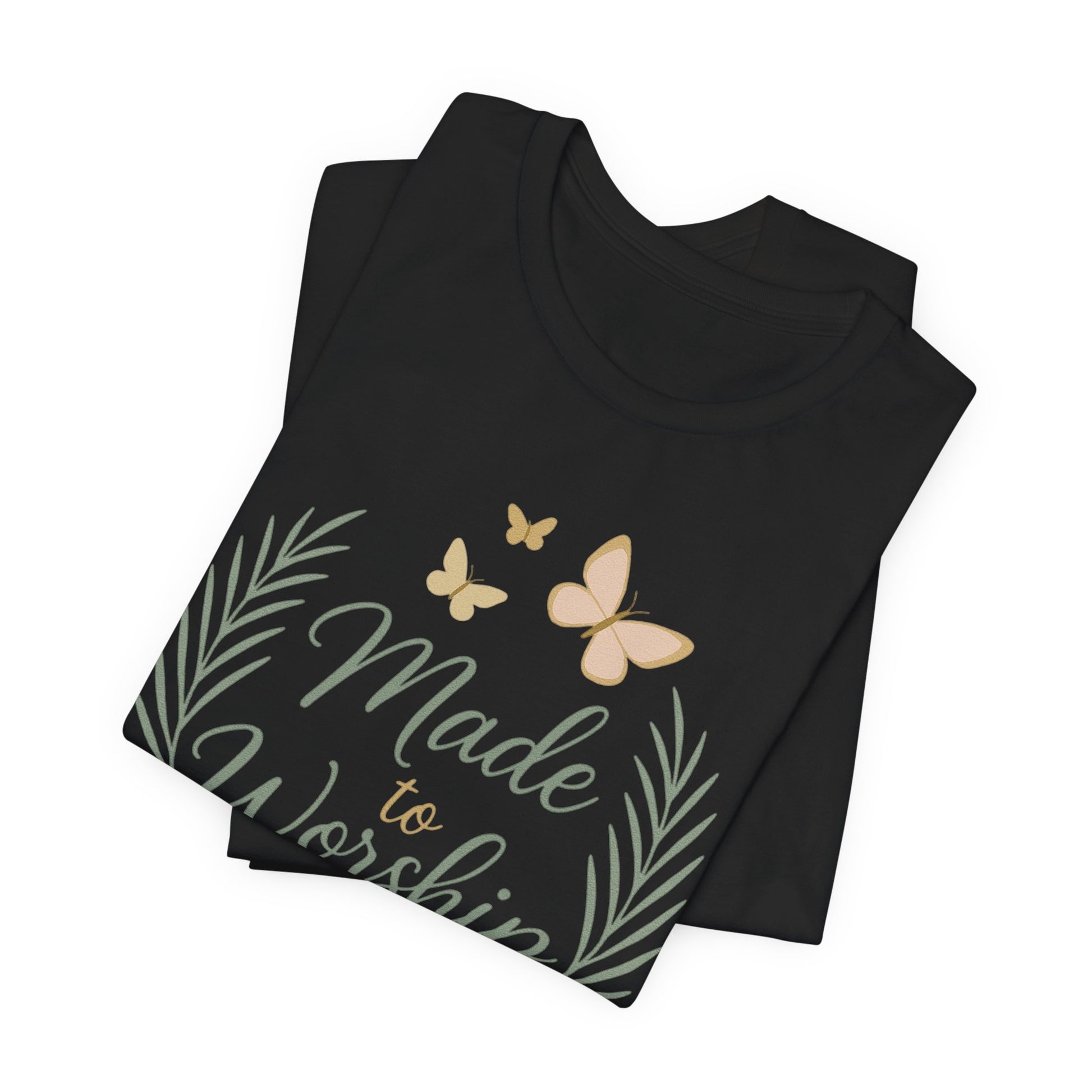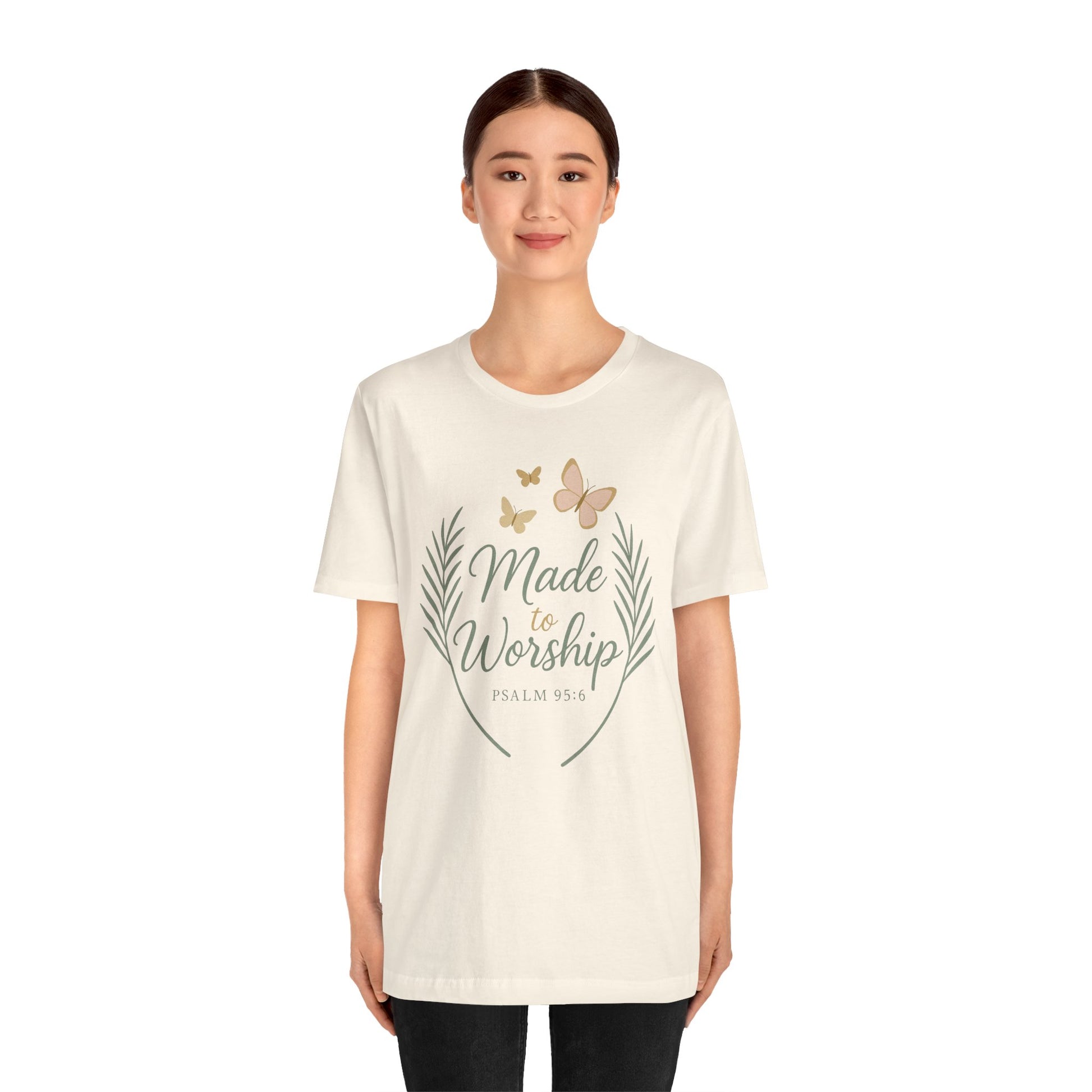 Made to Worship T-Shirt – Psalm 95:6 Christian Faith Tee with Butterflies